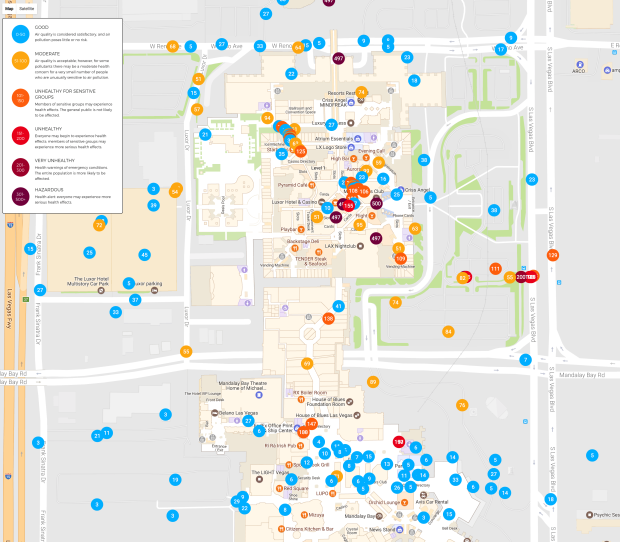 Close-up view of the air quality generated by our test users in Vegas. You’ll see big differences between the outside air quality and the air quality inside say the casino.